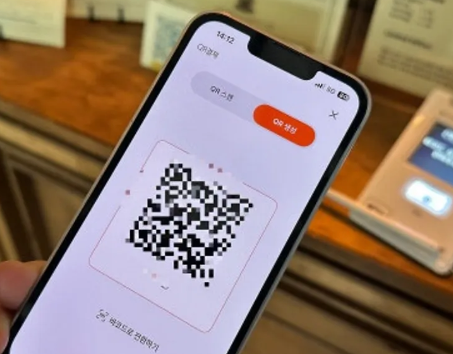 - 앱 실행 → ‘결제하기’ → ‘QR결제’ 또는 ‘바코드결제’ 선택