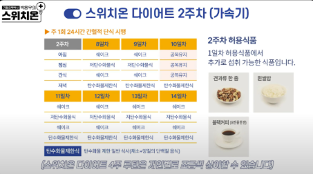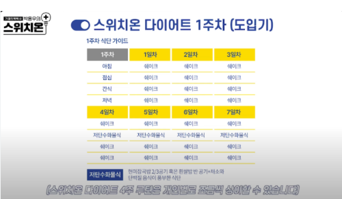 스위치온 다이어트 주 단위 식단 예시